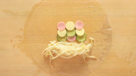 ※ライスペーパーは水に浸し過ぎるとやわらかくなり過ぎ、巻きにくくなるので注意します。サッと水にくぐらせ、やや硬い位が良いでしょう。