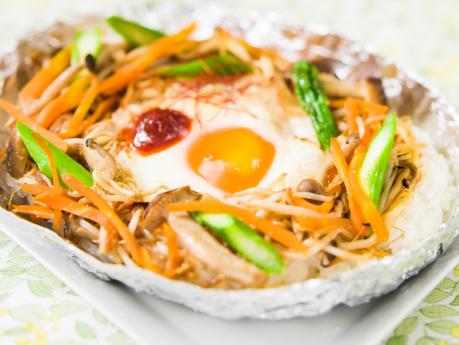 フライパンにサラダ油を熱し、卵を割り入れて蓋をし、半熟の目玉焼きを作ります。