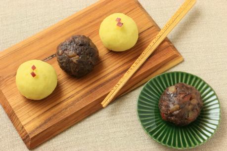 白こしあんは12等分にし、ヘタをとったイチゴを包みます。