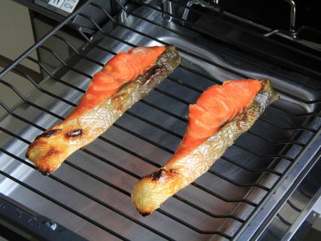 塩鮭は≪グリル≫で焼きます。焼きあがれば皮と骨を取り、身をほぐします。