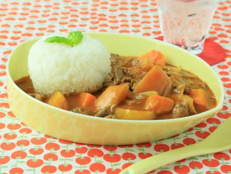 刻んだカレールウ、(a)を加え、塩、コショウで味を調えます。