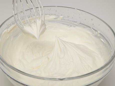 ボウルに(A)の生クリーム(200ml)と砂糖(20g)、キルシュ(小さじ2)を合わせ、氷水にあてながら9分立てにします。