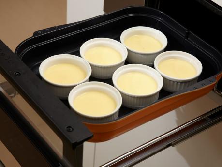 キャセロールに水(300ml)を注ぎ、(1)のココットを置き、ふたをしてマルチグリルを≪調理モード:蒸す≫に設定し、約4~5分蒸した後、余熱で約4分置きます。