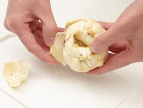 ゆり根(15g)は1枚ずつはがしてきれいに洗い、適当な大きさに切ります。