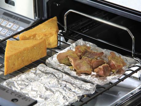 厚揚げは熱湯でサッと茹で油ぬきし、≪グリル≫で焼きます。