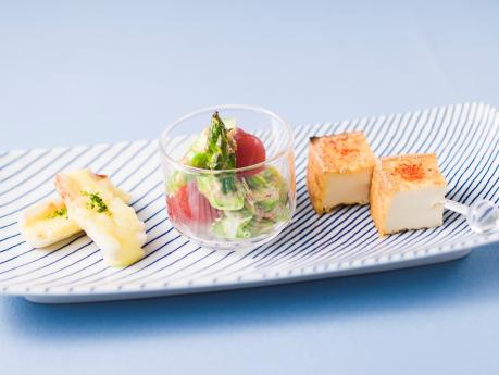 マグロは1.5cm角に切り、半量の(a)で和えます。