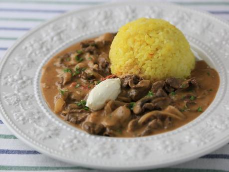 鍋にオリーブ油を熱し、タマネギをしんなりするまで炒めます。鶏肉を加えて炒め、軽く塩、コショウをします。