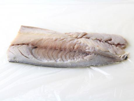 頭から尾にむけて薄皮をむき、中骨を取り除きます。